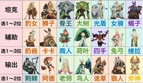 基础配置通常由豹女、卡卡、奶爸和狮子中的任意三位,加上核心商人构成。在此基础上,再根据实际情况选择荆棘、芙拉贝尔或阿德之一,以满足控制、召唤或点杀的需求。这一阵容不仅拥有坚实的前线防御,还具备不俗的输出和续航能力,是玩家在游戏初期快速推进、积累资源的优选方案。