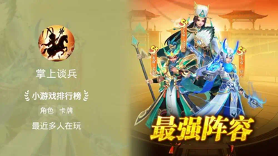 掌上谈兵最强阵容四套有哪些?这款游戏很多玩家都是比较好奇阵容的搭配的,很多玩家都是想要小编推荐给大家,大家都是可以去根据合理挑选,接下来小编推荐四套给大家参考,希望是有帮助到大家。