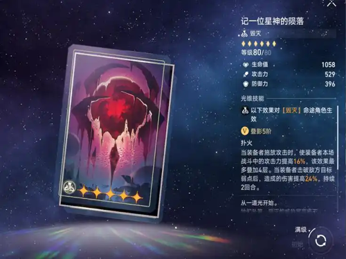 如果玩家们资源有限,也可以选择另外一个光椎替代,就是黑塔商店兑换的记一位星神的陨落,这个光椎是白厄的性价比首选满叠影后提供攻击加成和弱点击破增伤,虽然不能跟专属光椎相比,但是差距也不大,叠层机制简单,白厄开启终结技附加物理弱点后,可稳定触发增伤。