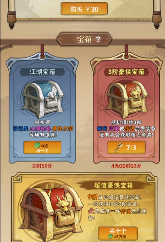 这里建议大家购买宝箱,因为宝箱可以开出很多好的装备,这些对于0氪玩家提升是比较高了。