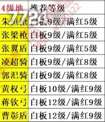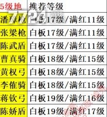 请注意提供的阵容表从上到下是越来越难的,而且也给大家推荐了适合打此守军的对应武将等级,当然不是一定要照搬武将等级,只作个参考就够。