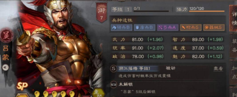 毫无疑问现在sp吕蒙可以走吴弓阵容,并且这么高的统率提升还是比较大了。