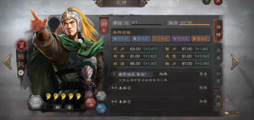 现在加强了可以提高提高己方主将7%→14%攻心,其他地方不变因此陆抗不再是提供不靠谱的奇谋几率,还可以增加法术吸血效果,因此对于主将的兵力恢复有很大的提升。如果造成10000谋略伤害,那么可以恢复1400兵力,这个回复量还是非常可观了。