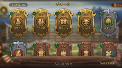 计策类:计策类军令可用于强化军令,赋予其他军令独一无二的效果