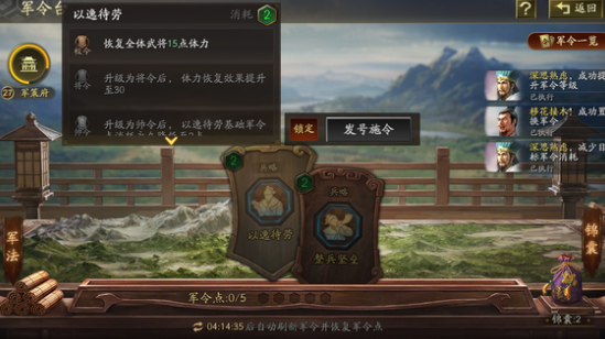 兵略类:兵略类军令可为主公快速恢复武将状态