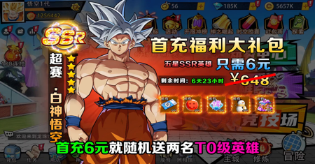 礼包奖励:钻石*1000、8小时英雄精魄*3、武道大会挑战书*3 孙悟空超赛碎片*10