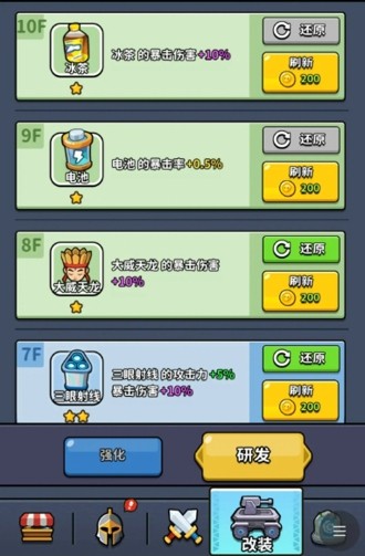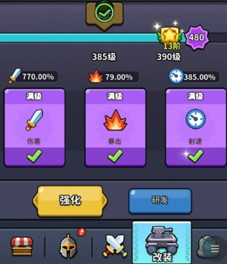 2.局外技巧:需要搭配4把核心武器,锁定好局内升级池,避免无效的随机技能,优先需要升级战车的攻击等全局属性,降低后期闯关的难度,建议搭配范围扫射的武器使用,清理小怪和打BOSS都有奇效,比较高的难度可以优先搭配控制技能,能够有效控制怪物的前进速度。