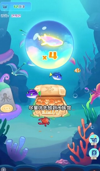 首先开局我们要优先跟着主线解锁基础的功能,可以优先获取到贝壳、木材还有渔网这种初始资源,每日进行签到清空体力,资源获取最大化,捕鱼的时候可以观察潮汐时间段,例如5-7点和17-19点,这种时候的高价值的鱼类是会比较多的,建筑优先升级蟹岛和水族馆。