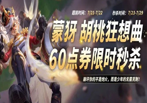 蒙犽新皮肤—【胡桃狂想曲】这款皮肤的定位是限时秒杀皮肤,皮肤上线价格为60点券。