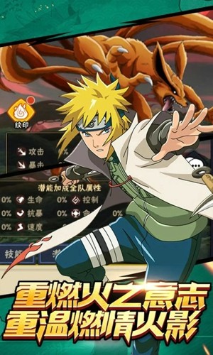 3.技能升级:技能直接关系到战斗中的输出效果,所以说有了破解版提供的资源以后,应优先提升主力忍者的核心技能。